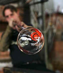 Die gebogenen Glasröhren werden dann mit Edelgasen bepumpt und durch Hochspannungs-elektroden zum Leuchten gebracht. Die Glassysteme können dann ganz klassisch offen liegen oder etwas dezenter hinter einer Plexiglasfront leuchten.
